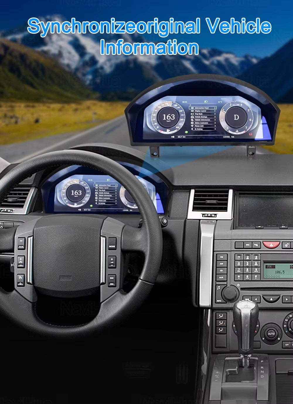 Omnitek 12.3 Inch LCD Digital Instrument Cluster for Land Rover Range Rover Sport L320 / Discovery 3 LR3 L319 2005-2009, Virtual Cockpit Car Dashboard Speedometer Gauge Panel