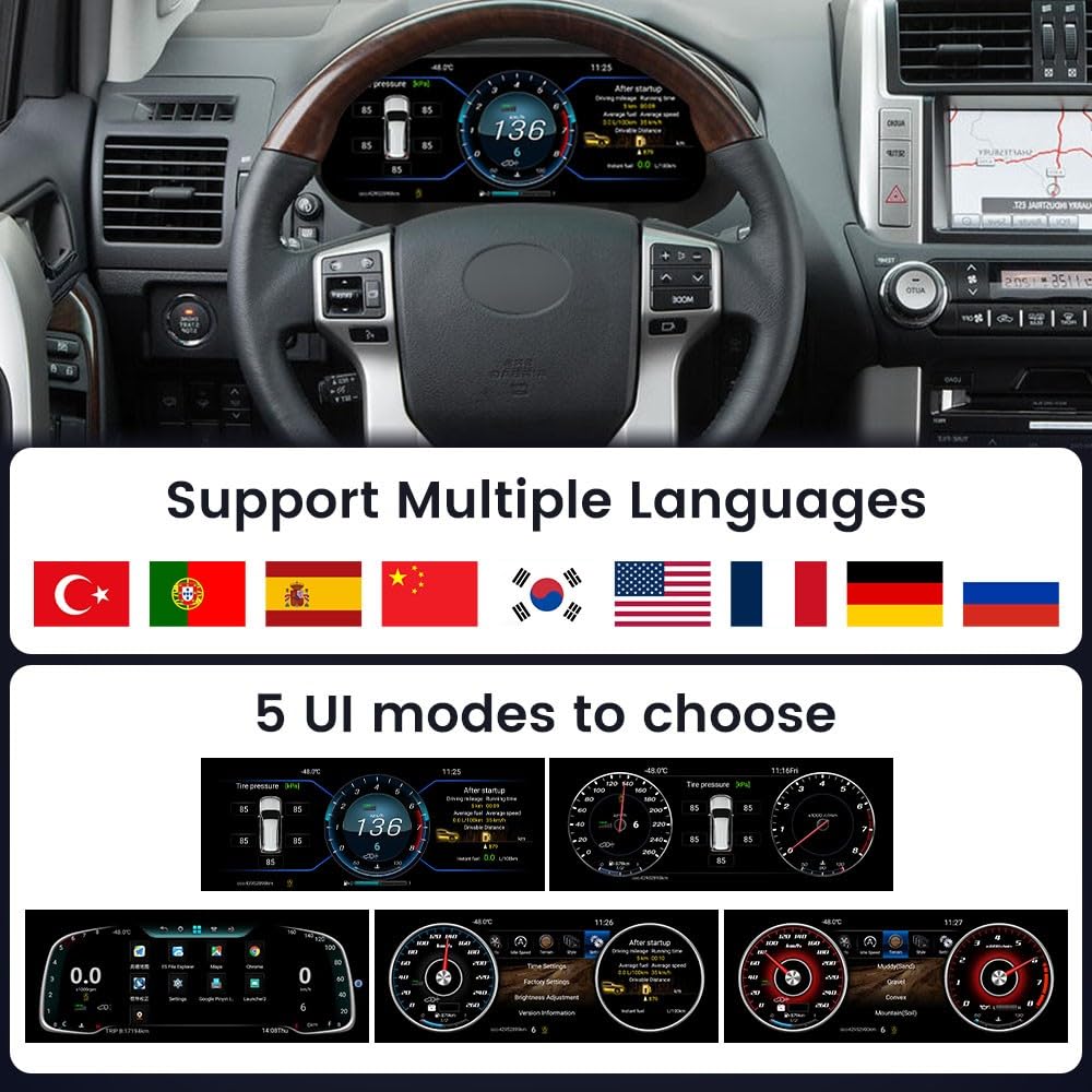 Omnitek 12.3" Linux Auto Aftermarket Digital Instrument Dash Panel Car Gauge Cluster Replacement Dashboard LCD Display for Toyota Prado 2010-2019