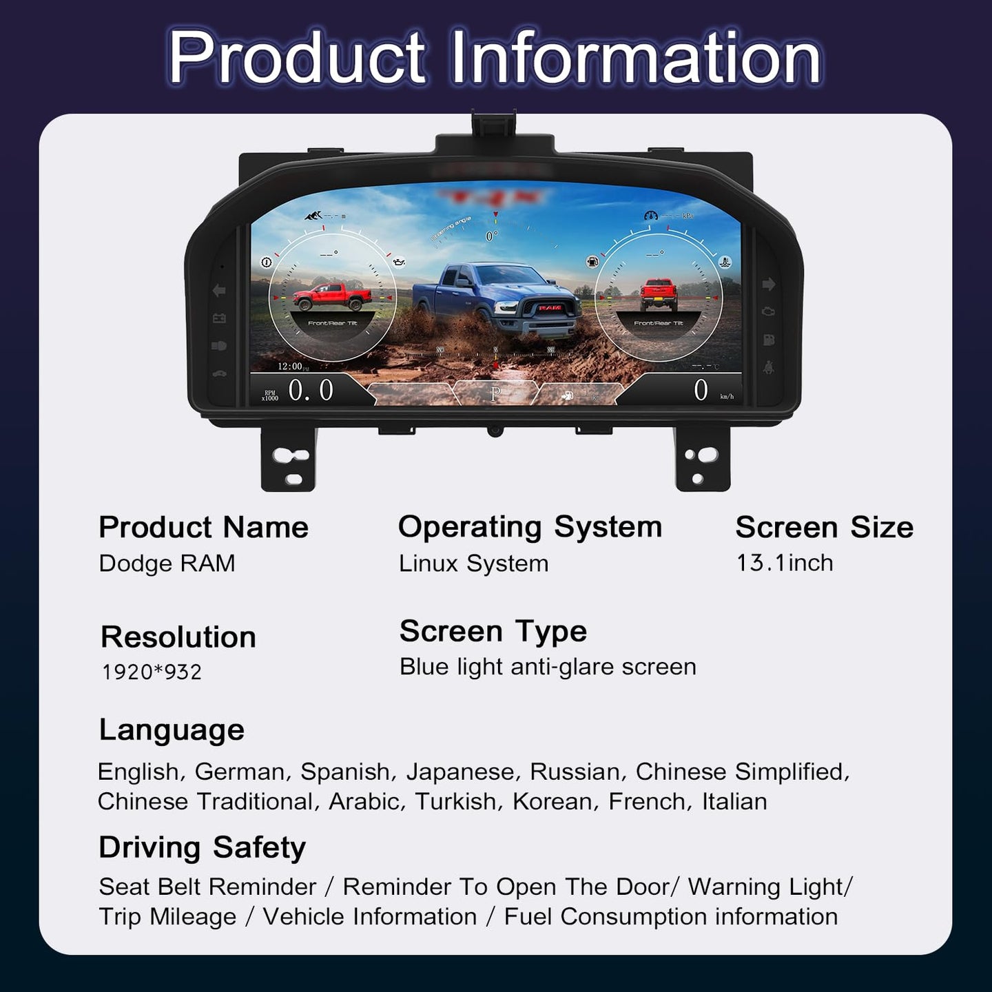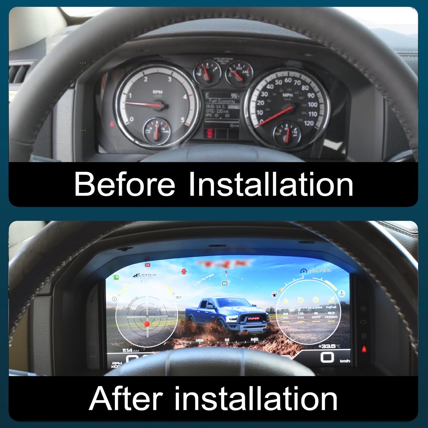 - 🚗Upgrade your Dodge Ram 2008-2012 with this Digital Speedometer and embrace the future of driving technology. We retained the original car instrument cable, No cutting or modification required, and installed in the new digital instrument screen, which can retain all the data and functions of the original car. so that our new digital instrument cluster can work more perfectly with the original car.