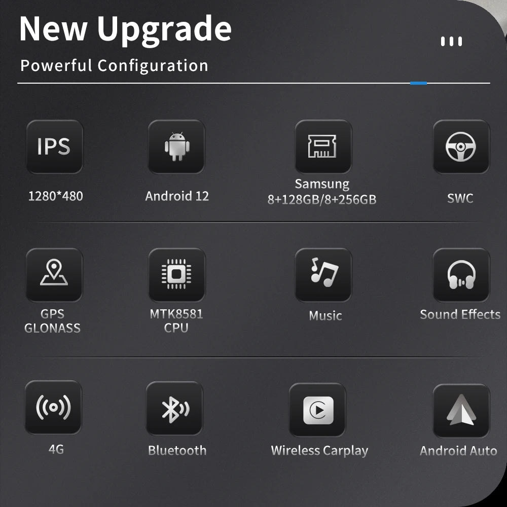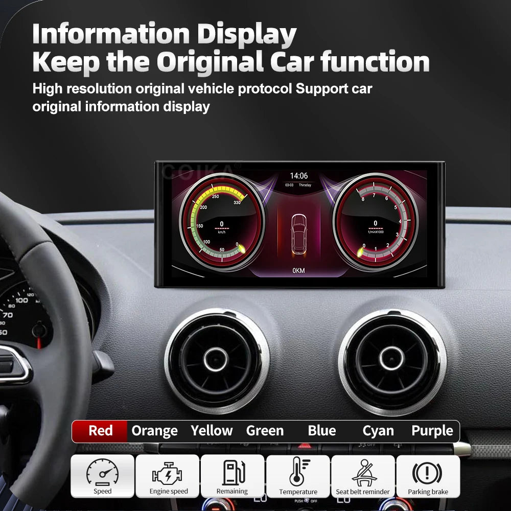 12.3 inch Android 11.0 HD digital touch screen 1. Android 11.0 operating system 2. Support 1080P+ support lossless music 3. Support steering wheel control (if your car has it) 4. Support Phone Link (AirPlay, Miracast) 5. Output: 4x50W max Power output/5.1 channel lossless audio output 6.Audio Frequency: 7 EQ balanced audio processing technology 7.OSD language: English/Russian/French/German/Spanish/Italian/Arabic/Portuguese/Turkish/Thai/ More than 20 languages such as Polish/Hebrew 8. Automatically display rear view camera image when reversing 9. Support media card/GPS card/USB memory stick up to 32GB SD card and 1T hard disk 10. Audio model: Classic/Rock/ Pop/Hall Cinema 11. Music spectrum: display music spectrum when playing audio 12. Audio format: MP3/ WMA/ FLAC/ APE/ ACC etc. 13. Picture format: JPG/ BMP/ GIF/ PNG etc. 14. Video format: H264/ MP4/ AVI/ RMVB/ FLV/ MKV/ MOV, etc. 15.WiFi: Built-in WiFi and antenna 16.Car Door Info: Display the status of the door switch (the original car has this function) 17.Rotating Speed: Display the speed on the screen 18. Running Speed: Display the running speed or engine on the screen 19. Rear view camera: For cars without original camera 20. Support the latest phonebook search, you can search and find contacts in the downloaded phonebook, just enter the name The first letter, you will find some related names, then you can choose the suitable one 21.Radio Tuner with RDS, 30 Preset Radio Stations (FM: 3*6, AM: 2*6) 22.USB port and Micro SD slot, support USB stick and memory card up to 32GB 23.Parking Sensor: Suitable for cars without original parking sensor 24.TPMS: USB TPMS for Android car GPS 25.Support steering wheel control function Support steering wheel control function