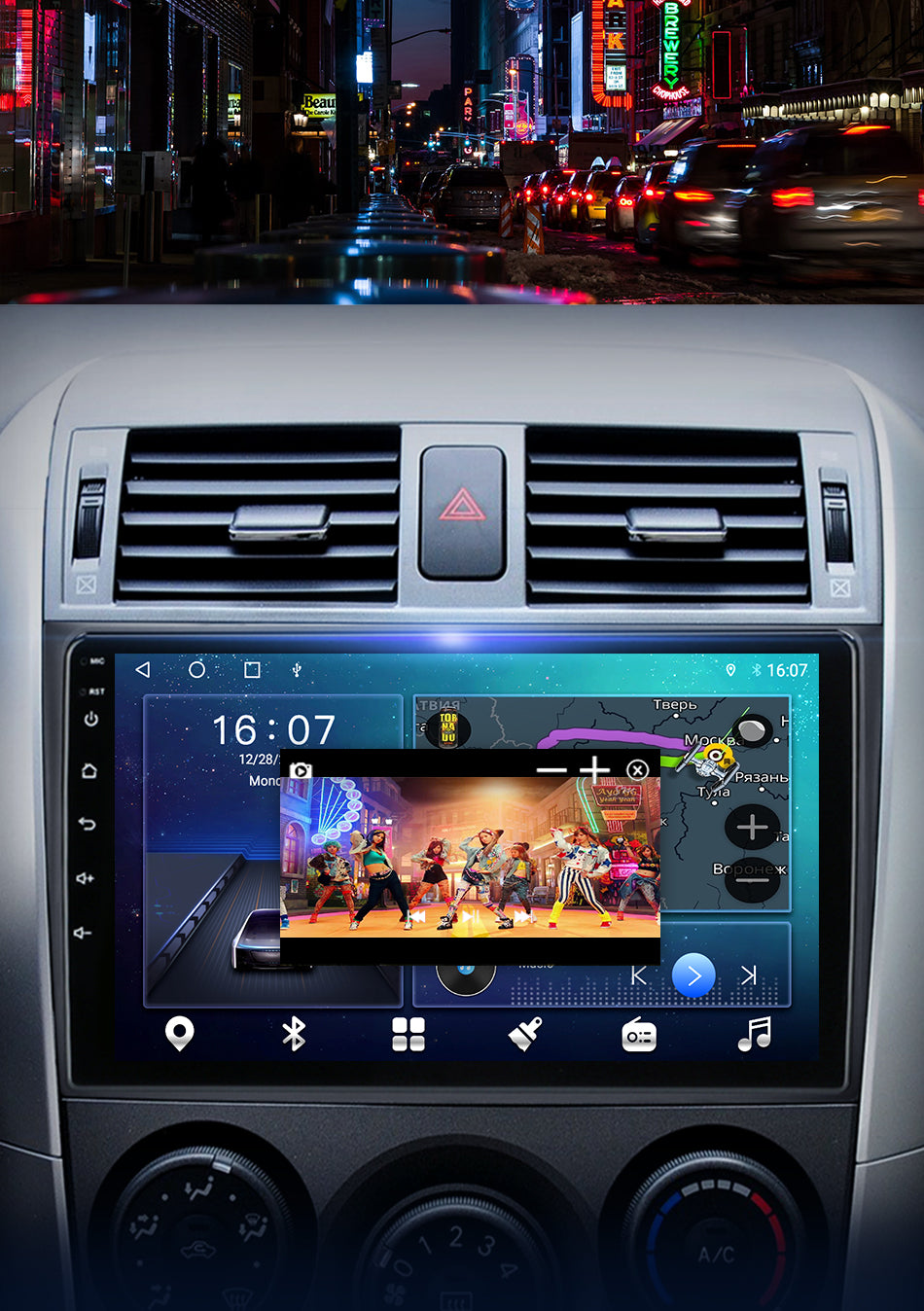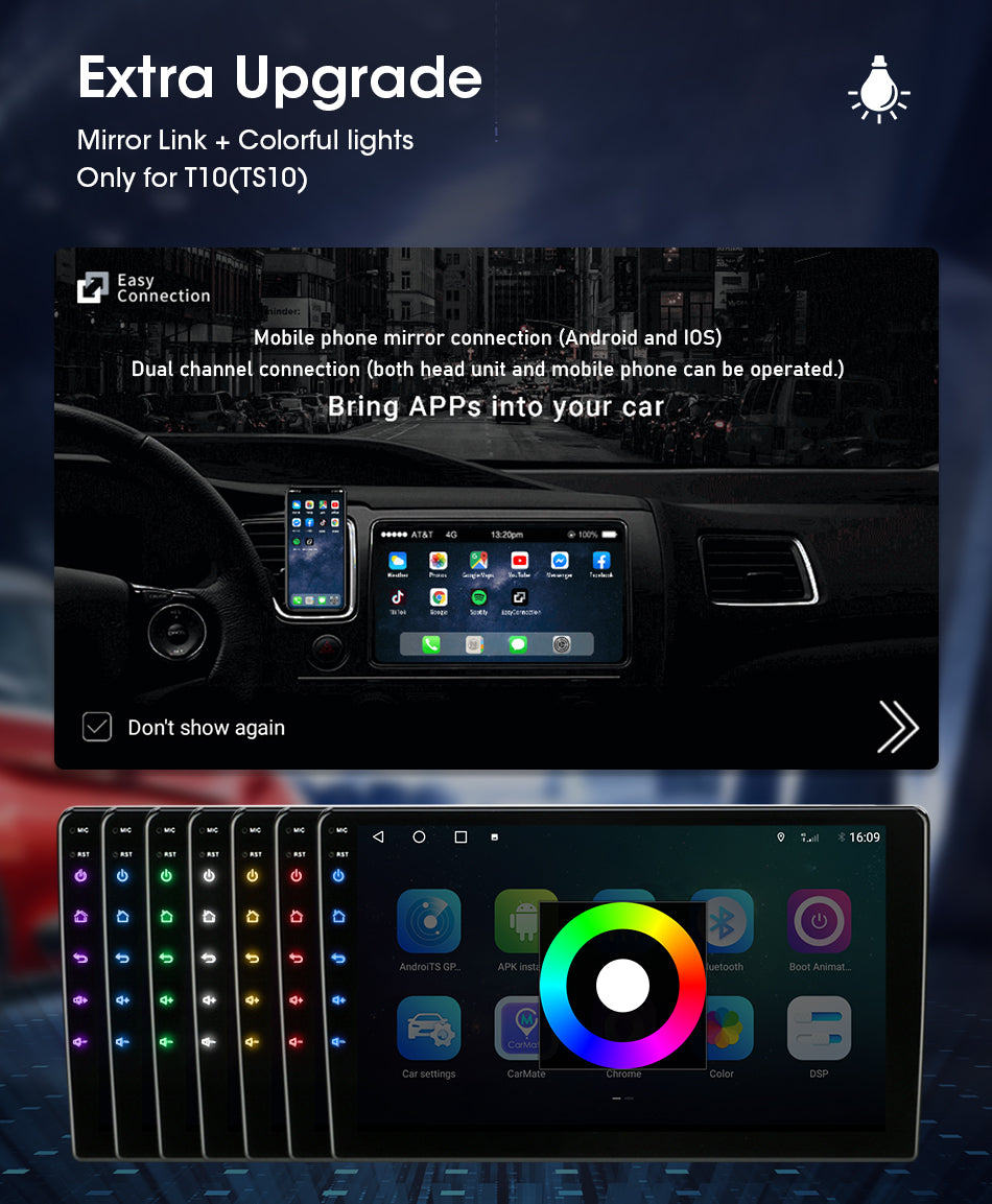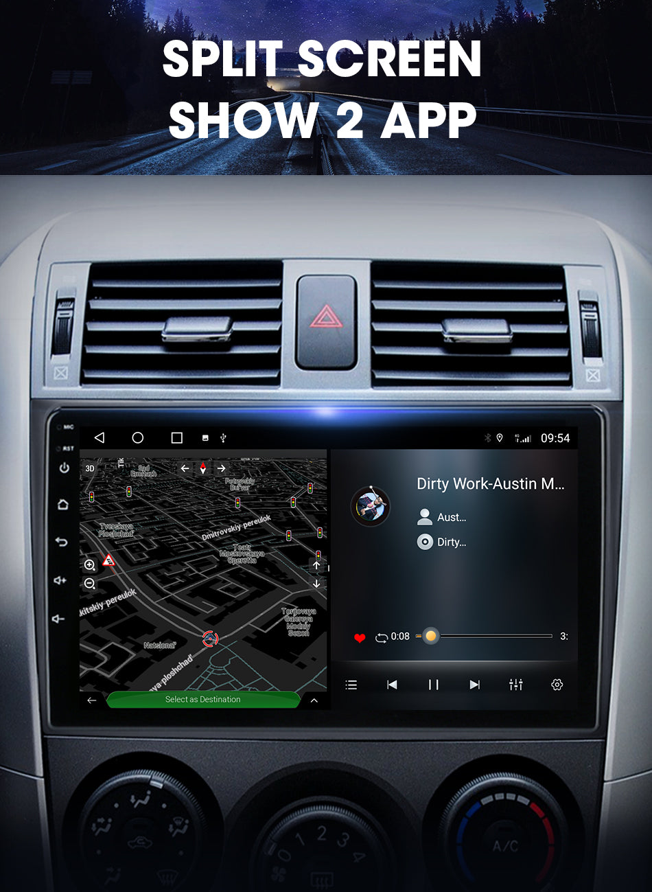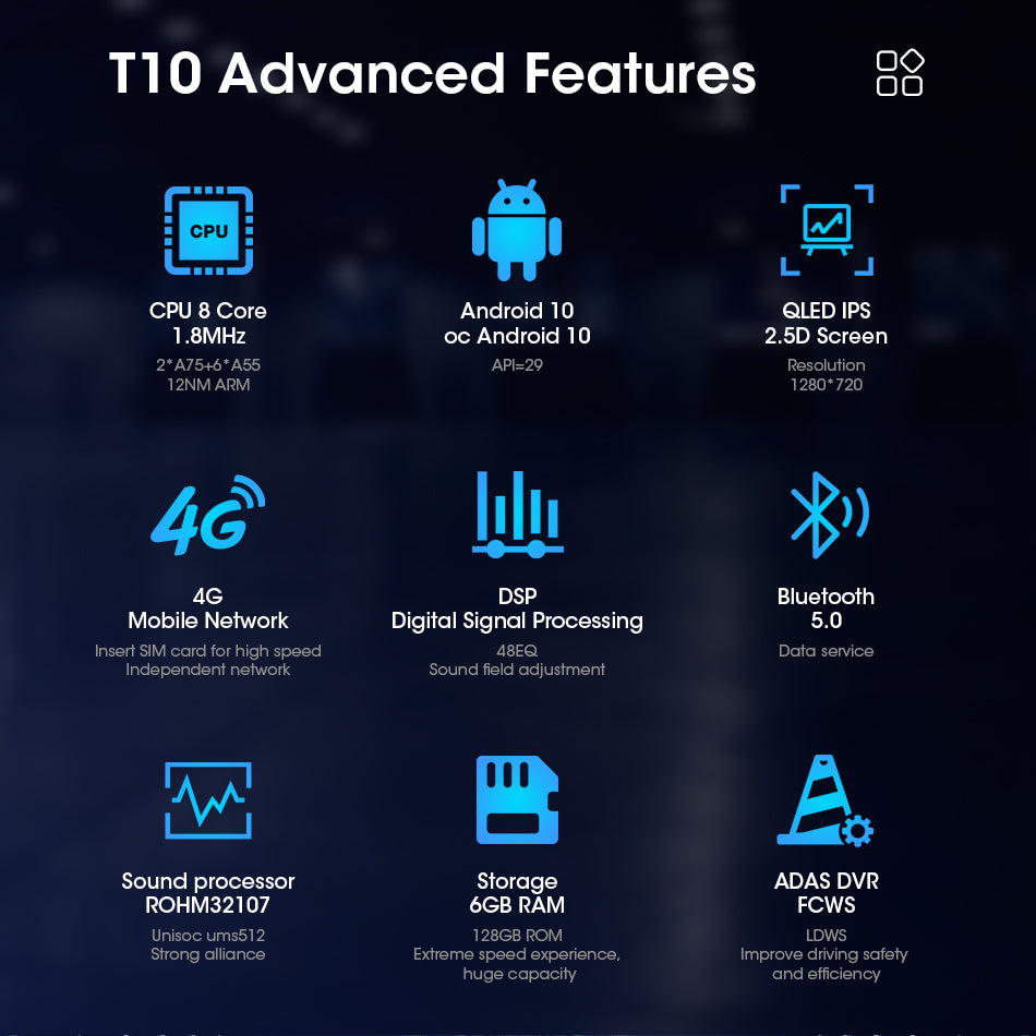 9/10 inch Android 11.0 HD digital touch screen 1. Android 11.0 operating system 2. Support 1080P+ support lossless music 3. Support steering wheel control (if your car has it) 4. Support Phone Link (AirPlay, Miracast) 5. Output: 4x50W max Power output/5.1 channel lossless audio output 6.Audio Frequency: 7 EQ balanced audio processing technology 7.OSD language: English/Russian/French/German/Spanish/Italian/Arabic/Portuguese/Turkish/Thai/ More than 20 languages such as Polish/Hebrew 8. Automatically display rear view camera image when reversing 9. Support media card/GPS card/USB memory stick up to 32GB SD card and 1T hard disk 10. Audio model: Classic/Rock/ Pop/Hall Cinema 11. Music spectrum: display music spectrum when playing audio 12. Audio format: MP3/ WMA/ FLAC/ APE/ ACC etc. 13. Picture format: JPG/ BMP/ GIF/ PNG etc. 14. Video format: H264/ MP4/ AVI/ RMVB/ FLV/ MKV/ MOV, etc. 15.WiFi: Built-in WiFi and antenna 16.Car Door Info: Display the status of the door switch (the original car has this function) 17.Rotating Speed: Display the speed on the screen 18. Running Speed: Display the running speed or engine on the screen 19. Rear view camera: For cars without original camera 20. Support the latest phonebook search, you can search and find contacts in the downloaded phonebook, just enter the name The first letter, you will find some related names, then you can choose the suitable one 21.Radio Tuner with RDS, 30 Preset Radio Stations (FM: 3*6, AM: 2*6) 22.USB port and Micro SD slot, support USB stick and memory card up to 32GB 23.Parking Sensor: Suitable for cars without original parking sensor 24.TPMS: USB TPMS for Android car GPS 25.Support steering wheel control function Support steering wheel control function