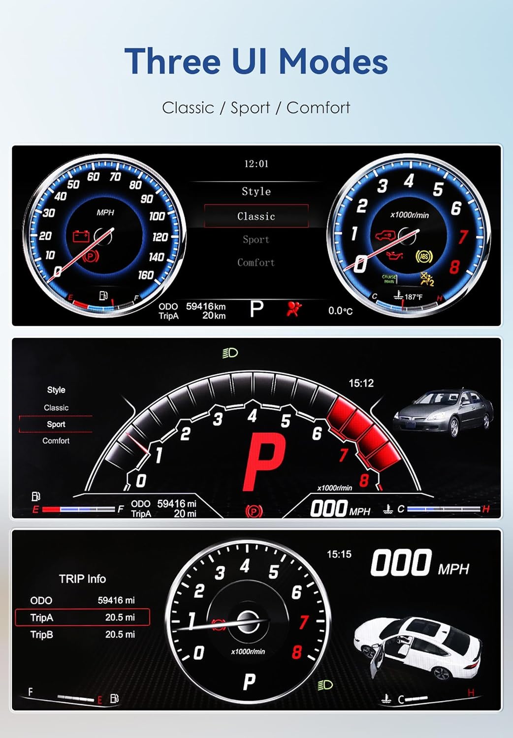 10.25 Digital Gauge Cluster for Honda Accord 7th 2003-2008 Virtual Speedometer LCD Automotive Replacement Instrument Dashboard Panel Instrument Cluster Odometer Upgrade