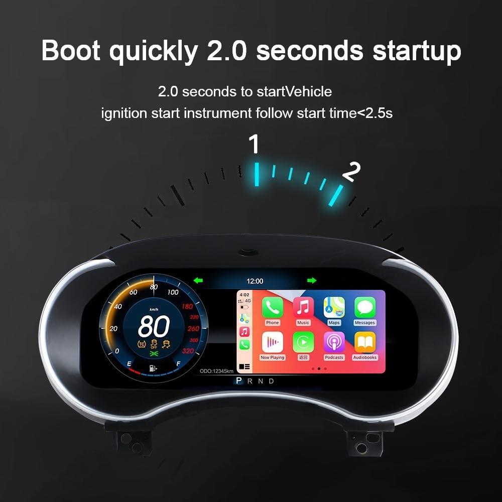 - 【Advantage】Boot quickly 2.0 seconds startup,ignition start Speedometer follow start time<2.5s.Not only improves the sense of science and technology of the vehicle, but also facilitates the driver to better view the vehicle data information